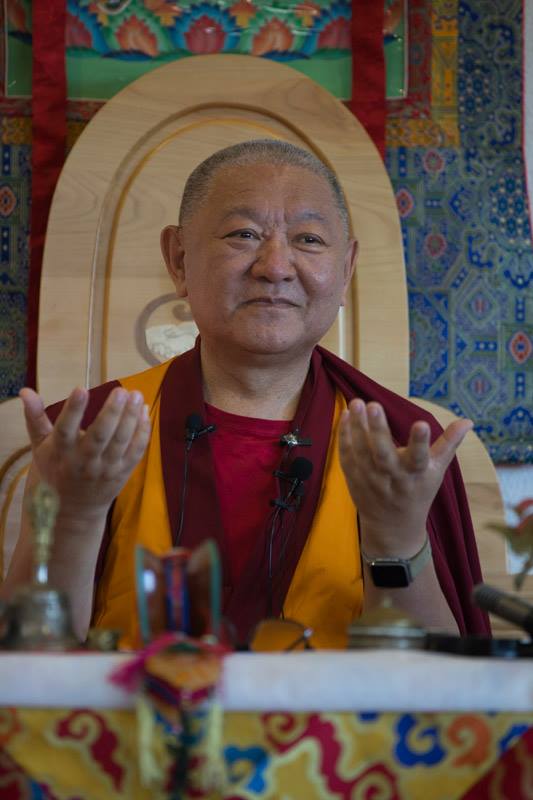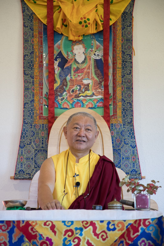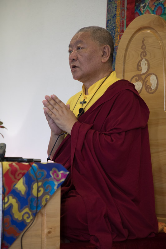 Rinpoche taught two sessions per day, morning and late afternoon, when he gradually went through the practise text and gave instruction. The talks were occasionally diverted or punctuated by stories and jokes, either to illustrate a point, or to wake the dozing students sitting in front of him as they struggled to concentrate in the sometimes sweltering heat during the post lunch period.